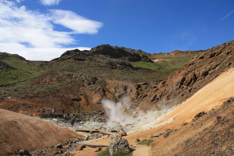 Een mooie route om te rijden is langs de zuidkust van het schiereiland Reykjanes. Onderweg kun je een bezoek brengen aan de Reykjanestá vogelklif en het geothermische gebied Krýsuvík met geothermische velden, zoals Seltún. Wist je dat IJsland een moderne economie heeft en één van de rijkste Europese landen is? De IJslanders lopen voorop in het gebruik van geothermische energie. Verwarmingscentrales in het hele land verwarmen negen op de tien woningen.
